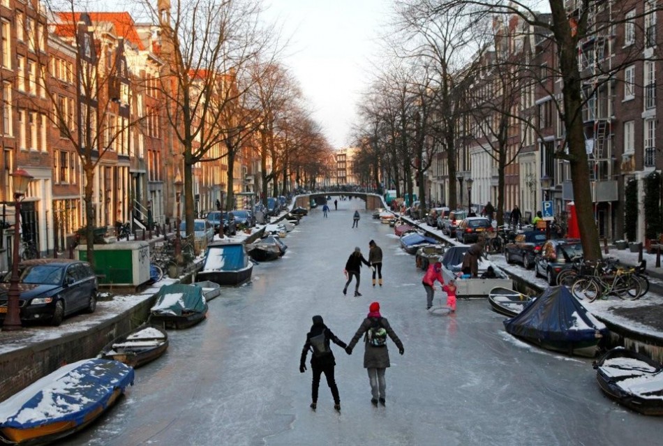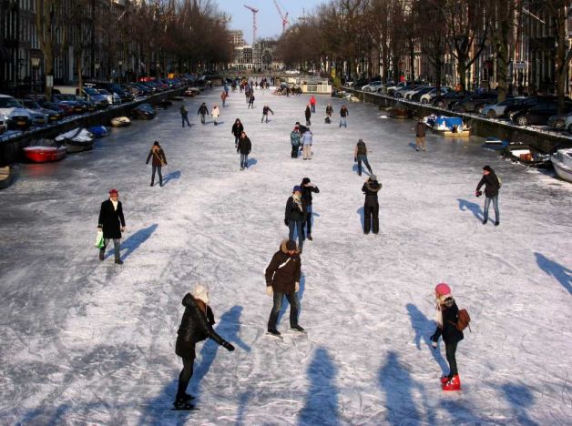 All lakes and canals are frozen right now and it is nice to see the canals with boats and people all frozen ice skating, riding chairs, eating and drinking on the frozen lake.